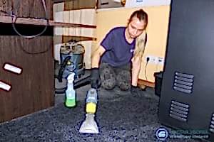 В тяжелых случаях специалисты прибегают к влажной химической чистке. В основу данного способа Pin-Up нанесение моющего раствора под высоким давлением при помощи специального оборудования. Такой подход позволяет растворителям глубоко проникнуть в структуру покрытия и вымыть все следы грязи.